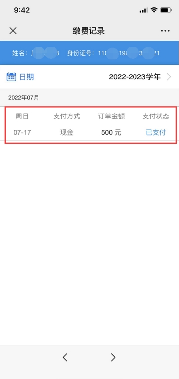 点击“学费缴费记录”,可以查看每次缴费的记录,点击缴费记录可以查看缴费凭证。