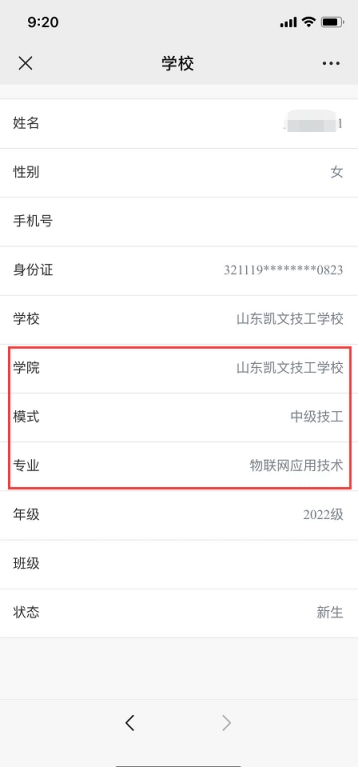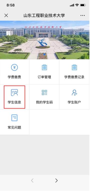登录后点击“学生信息”,确认姓名、身份证号、学院、模式、专业是否正确,确认无误后可以进入学费缴费。