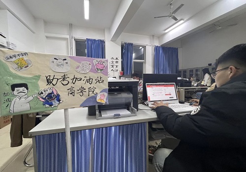为帮助考研学子安心备考,缓解压力,帮助同学们树立信心,营造和谐温暖的学院氛围,商学院于诚基楼418为考研考公学子设立了“助考加油站”,为大家提供了准考证免费打印服务。