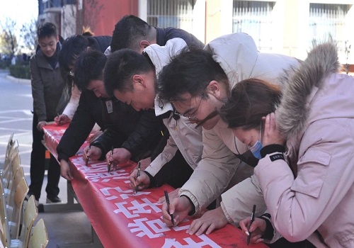 活动首先进行了启动仪式,学院领导和同学们拿起了桌上的签字笔,在宣传横幅上签下了自己的名字。签名不仅仅代表着对于消防安全的重视,更是表明大家坚持自觉履行消防安全职责的决心和信心。