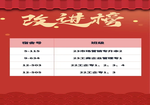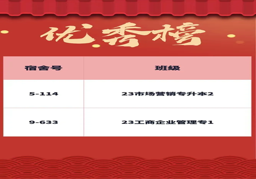 以下是此次深入宿舍走访工作所总结的“优秀榜”及“改进榜”,希望每位同学都能以前者为镜,持续不懈地提升个人及集体的生活空间质量。