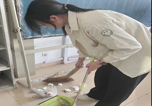 劳动奉献光荣,奋斗创造伟大。在活动过程中,同学们不畏酷暑,不惧脏乱。认认真真地将每一个在地上的垃圾,都放进自己随身携带的垃圾袋里,他们不放过任何一个角落,将整片活动区域都打扫的一尘不染。在实训室里的同学们,将地上的垃圾灰尘清扫干净,将桌椅摆放整齐,他们把同学们上课的地方收拾的干净整洁,使实训教室焕然一新。