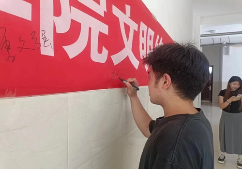 文明修身不仅关乎个人品质的提升,更关乎社会的和谐与稳定。本次文明修身工程启动仪式的开展,不仅增强了同学们“提高品质、争做先锋”的意识,更让他们认识到了文明修身的重要性。未来,我院将开展“劳中悟美”“尚简餐厅”“明礼班级”“文明校园”等系列活动,让文明成为我们每个人的自觉行为,同时,我们也希望广大师生能够积极参与,共同推动文明修身工程的深入开展。让我们携手共进,以文明修身工程为契机,共同书写属于我们这个时代的文明篇章!