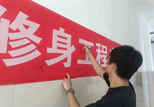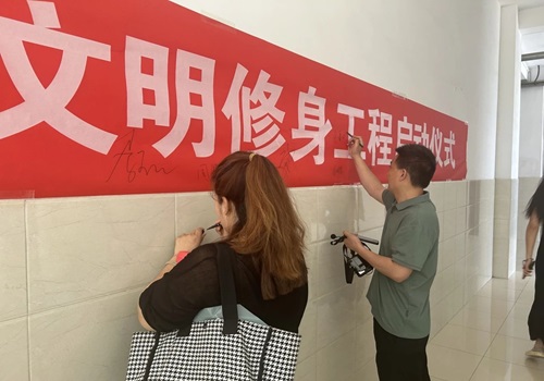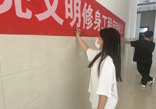 启动仪式上,路过的老师和学生们都怀着激动和期待的心情,纷纷驻足在横幅前,并在这面横幅上签下了自己的名字。签字过程中,我们看到了无数颗炽热的心在跳动,无数份坚定的信念在传递,他们的字迹或工整而有力,或洒脱而奔放,用自己的方式表达了对这一工程的支持与承诺。我们深知,文明修身活动的开展并不只是为了让学生们在日常生活中督促自己的行为,更是为了提升国家整体文明水平,塑造良好的国家形象,推动国家发展进步。作为国家的未来建设者和接班人,文明修身,我们势在必行!随着启动仪式的进行,横幅上的名字越来越多,这面横幅也变得更有分量和意义,此时,它不仅仅是一面横幅,更是承载着所有人共同殷盼和期许的象征。