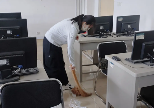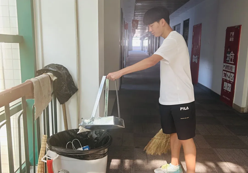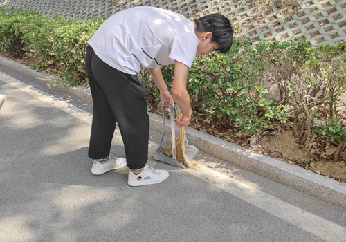 四月末五月初正是柳絮肆意的时候,校园内柳絮飞扬聚集,翻滚在校园各处,因此,同学们除正常清理路边树丛的枯枝落叶和烟头垃圾外,还要清理在校园里聚集柳絮。到达劳动场地后,同学们迅速地分好组,分头行动,分别对校园内的垃圾进行了清理,彼时的天气已是略显燥热,但同学们依然顶着艳阳,进行垃圾清理。在劳动教育快要结束的时候,即使汗液早已爬上他们的额头,他们也有条不紊地进行最后的收尾工作。