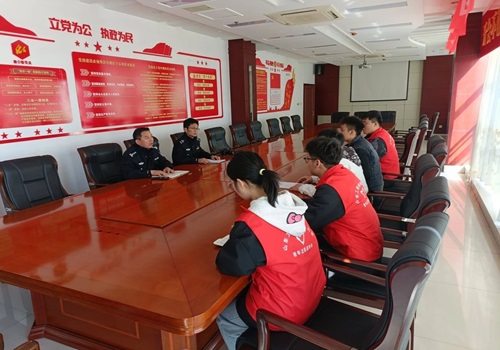 会议伊始,许科长和刘警官对我院师生的到来表示了热烈欢迎,并简要介绍了大学生志愿共创计划的背景和意义,探讨了接下来的活动计划,并推进搭建“新时代文明实践志愿服务基地”。他们表示,大学生作为社会的新鲜血液,拥有丰富的知识、技能和热情,是志愿服务事业的重要力量。通过这一计划,希望能够搭建一个平台,让大学生们更好地参与到志愿服务中来,发挥他们的优势,为社会贡献自己的力量。会议最后,许科长和刘警官与我院温书记制定了大学生志愿服务共创活动的具体规划和发展蓝图。大家一致表示,将以此次会议为契机,进一步加强合作与交流,推动大学生志愿服务事业不断向前发展。