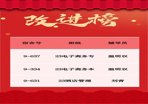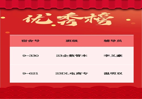 宿舍安全无小事,人人有责筑防线。通过开展本次“辅导员宿舍工作日”活动,不仅提高了同学们对宿舍安全的重视,还增进了师生之间的交流与沟通。希望同学们能够继续自觉做好宿舍管理工作,共同营造一个温馨、和谐、安全的宿舍环境。经过各辅导员严格的检查,选出以下优秀榜和改进榜宿舍,现将结果公布如下,希望各位同学积极向优秀宿舍学习。