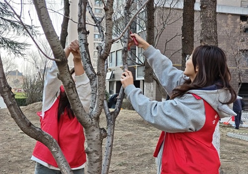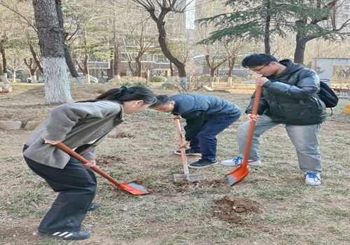 商学院志愿者们手持铁锹,紧握着象征希望的新苗,积极参与植树活动。同学们在植树过程中分工明确,配合默契,从挖坑、搬运、培土到提水浇灌,每一个环节都严谨有序,展现出高度的团结协作精神。他们用勤劳的双手,让树苗在春风中挺拔生长,为大地增添了一抹新绿,描绘出一幅早春时节充满生机与活力的画卷。