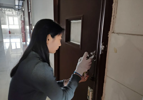 活动前期,负责人划分好区域,分发工具。活动中,同学们以雷锋为榜样,秉承不怕苦、不怕累的精神,以饱满的热情和积极的状态,对各宿舍门上的顽固污渍、残留胶印进行了细致的清理。大家个个干劲十足,忙碌的身影来回穿梭,经过志愿者们细致地清除,宿舍门口变得焕然一新,他们以实际行动践行雷锋精神,用辛勤劳动扮靓美丽校园
