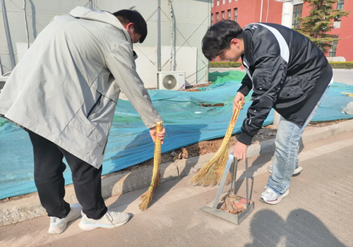 本次活动中,同学们都积极参与,分工明确,互帮互助,捡烟头、扫树叶、拾垃圾,让原本脏乱的街道,变得整洁如新。春色旖旎,阳光不燥,在蓝天之下,同学们挥舞着扫帚,他们与太阳同行,书写着属于自己的青春赞歌,让校园风景变得更加靓丽。