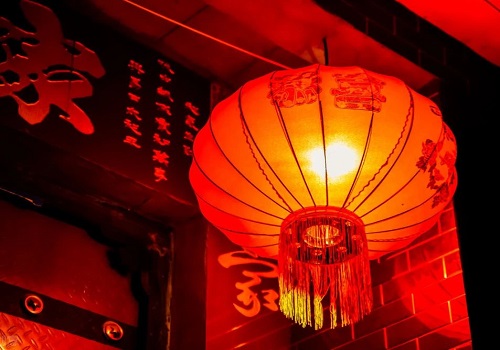 大红灯笼随风摇曳