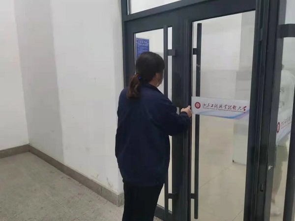 教学楼工作人员在巡查完教学楼上没人后,安全锁门。