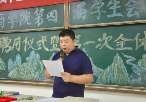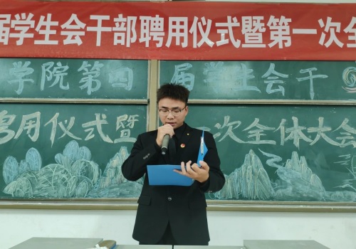 会议在热烈的掌声中拉开了帷幕,会议议程第一项,首先举行的是聘用仪式,主持人详细介绍了本届学生会干部的构成人员,对他们近期的工作情况进行了汇报,并表示期待他们在新学期中更加优秀的表现。