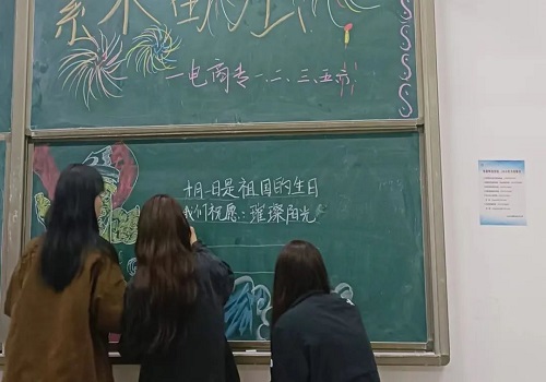 金秋十月,举国同庆。正值国庆节来临之际,为培养同学们的爱国之情,对学生进行良好的爱国教育,同时增强同学们的民族自豪感与自信感,商学院在晚自习举行以“喜迎中国庆,点亮中国红”为主题的黑板报比赛。