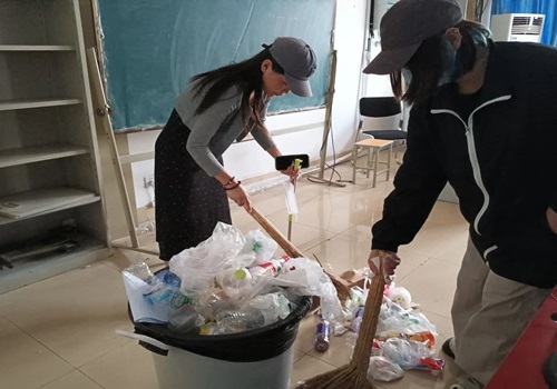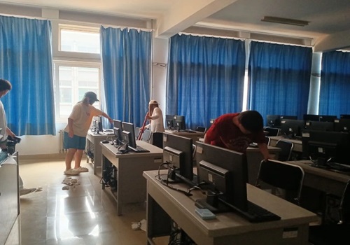 活动伊始,同学们便干劲满满,手持扫帚、抹布,带着满满的热情与期待,一丝不苟地打扫教室中遗留的垃圾和散落的灰尘。每一块瓷砖、每一扇窗都被细心打扫。同学们分工明确,有的负责清扫地面,有的专注擦亮玻璃,还有的整理书架,每一项任务都进行得有条不紊。汗水滑落,却也映照出青春最亮丽的色彩!经过我院学子的勤劳付出,教室地面焕然一新,绿化带干净美丽。烈日下,学生们汗流浃背的身影,生动诠释了“人多力量大”的道理。