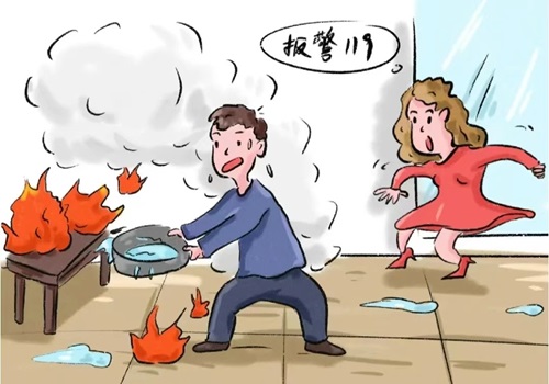 2.熟记灭火常识。发现火灾迅速拨打火警电话119,报警时要讲清详细起火部位、着火物质、火势大小、报警人姓名及电话号码。家用电器或线路着火,要先切断电源,再用干粉或气体灭火器灭火。救火时不要贸然开门窗,以免空气流通,加速火势蔓延。燃气罐着火,要用浸湿的被褥、衣物等捂盖灭火,并迅速关闭阀门。
