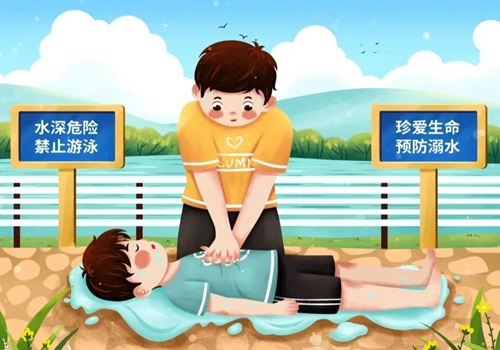 3.若遇他人溺水,牢记智慧救援。“叫”:大声呼救,吸引周围人员注意,并拨打紧急电话求助;“伸”:降低重心,趴在岸边,将救生杆、长木棍等硬质延伸物递给落水者;“抛”:将救生圈、空水桶等漂浮物或绳索、衣服等软质延伸物抛给落水者,助其漂浮或拉其上岸。