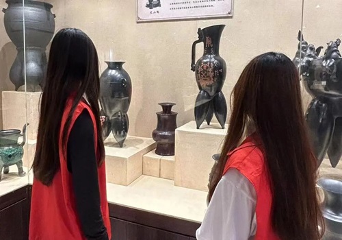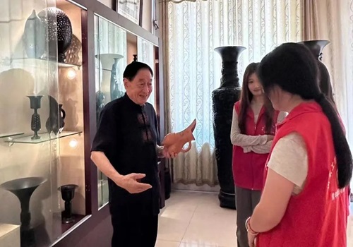 随后,刘老师带领志愿者们踏入了工艺体验馆,详尽地阐述了黑陶的种类及其深厚的历史底蕴,使志愿者们对黑陶有了更为全面且深入的认识。
