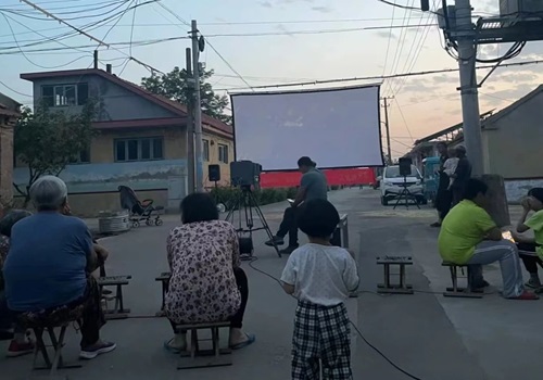 随后,实践团队精心策划,在村广场举办了一场公益电影放映活动。志愿者们经过仔细筛选,挑选出几部饱含红色精神的影片,旨在充实村民的精神文化生活,并深化大家的民族自豪感和责任感。电影放映结束后,队员们积极与村民们交流讨论,共同分享观影后的感受与体悟。