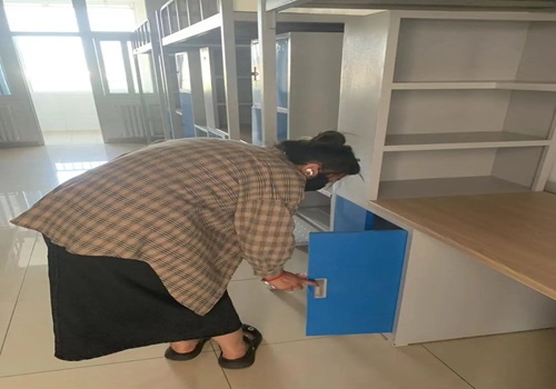 宿舍楼区,学长学姐们穿梭于各个楼层,排查新生宿舍的安全隐患,对各新生宿舍楼的消防器材、疏散指示、安全出口等设施进行了全面检查,确保了设施的完好无损和使用功能正常。同时,他们进入各宿舍查看有无电线外露以及有无易燃物品等现象,并对宿舍生活用品进行清点。