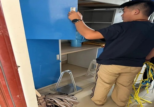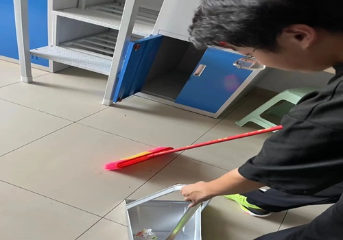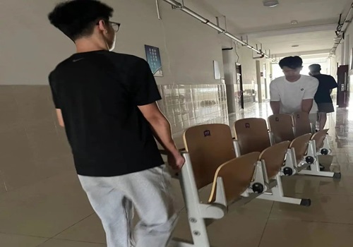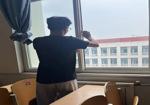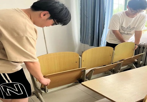 教学楼内,学长学姐们细心地清理每一间教室,调整桌椅,对教室内的插座、电路进行安全检查并提前开窗通风,确保每一位新生都能在一个舒适、整洁的环境中开始他们的学习之旅。