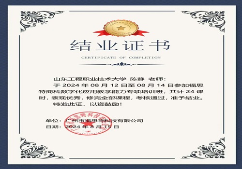 为了进一步提升商科专业教师队伍的数字化素养,增强其在教学中有效运用数字化工具的能力,推动商科教育教学与现代信息技术的深度融合,商学院特组织部分教师参与广州市福思特科技有限公司举办的“商科专业教师数字化应用教学能力专项培训”。我院18名教师参训,修完全部课程并考核通过,获得结业证书。