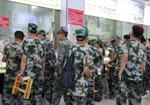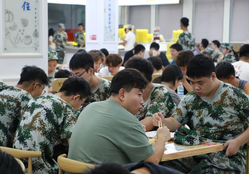 一天的辛勤训练后,食堂是我们的能量站。解散的命令响起,同学们以欢快的步伐冲向美食,每一次的选择,都是对味蕾的奖赏。在军训的生活中,享受这顿丰盛的餐食,让美好记忆永存。