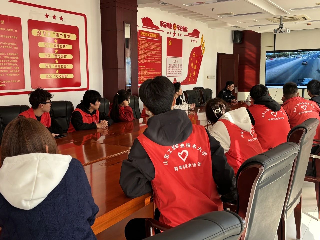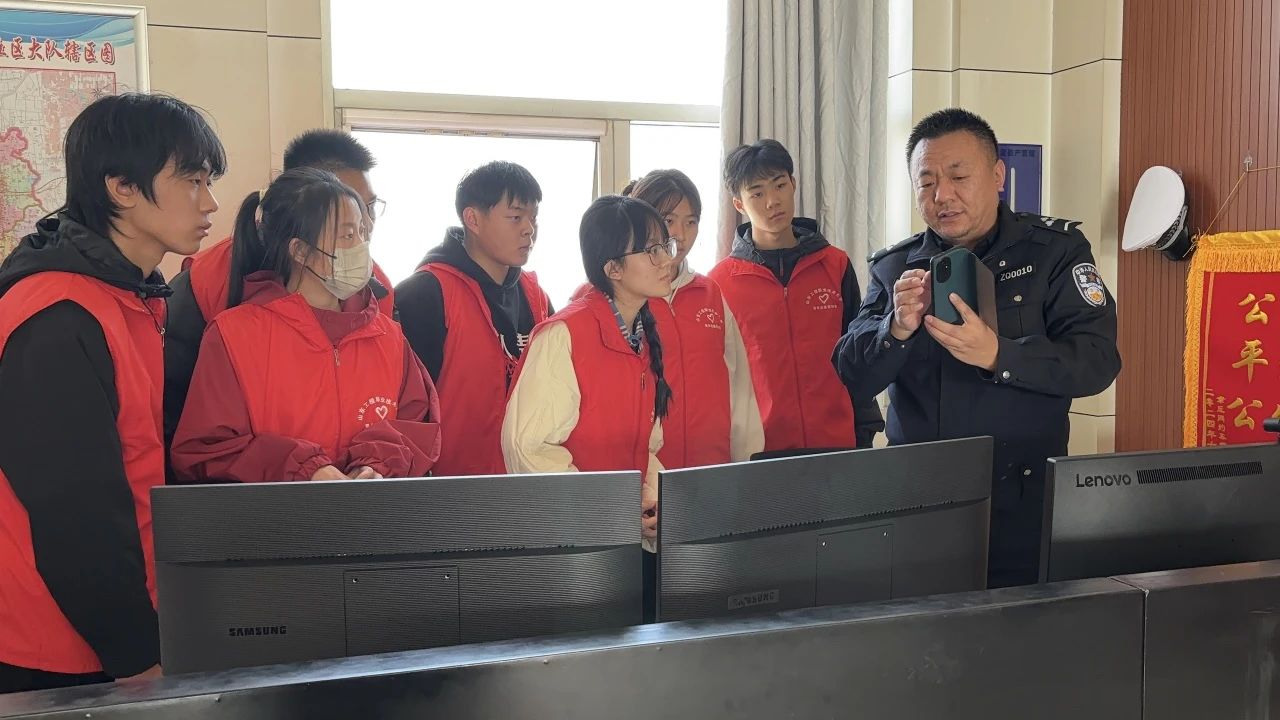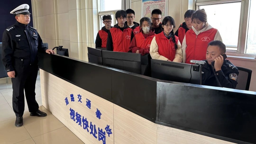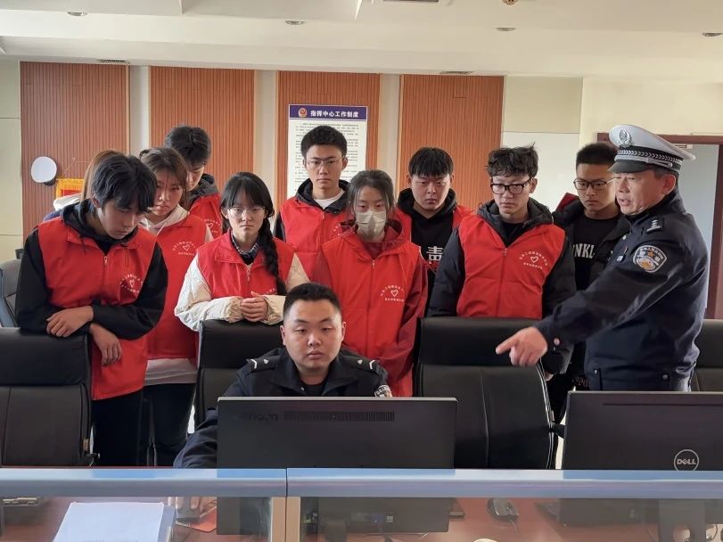 活动伊始,许科长与刘警官热情接待了志愿者们,并带领大家参观了交警大队的指挥中心。刘警官详细介绍了指挥中心的功能布局、工作流程以及在现代交通管理中所发挥的重要作用并介绍了交通事故视频快处岗的处理流程。通过模拟交通事故视频快处,志愿者们亲身体验了事故处理的全过程,对交警的日常工作有了更加深入的了解。