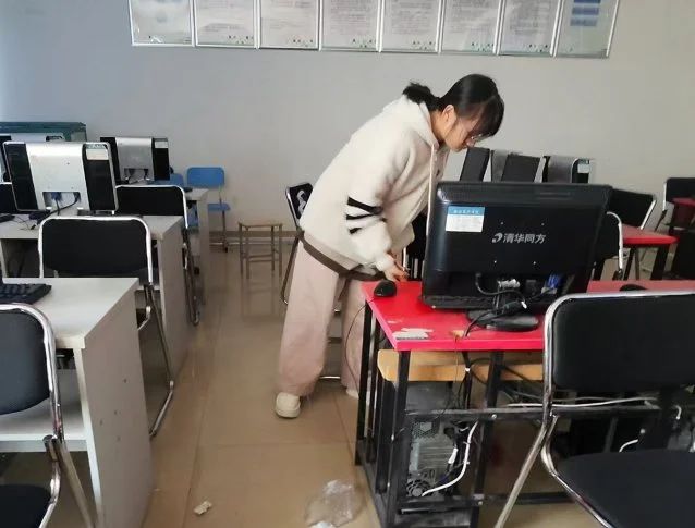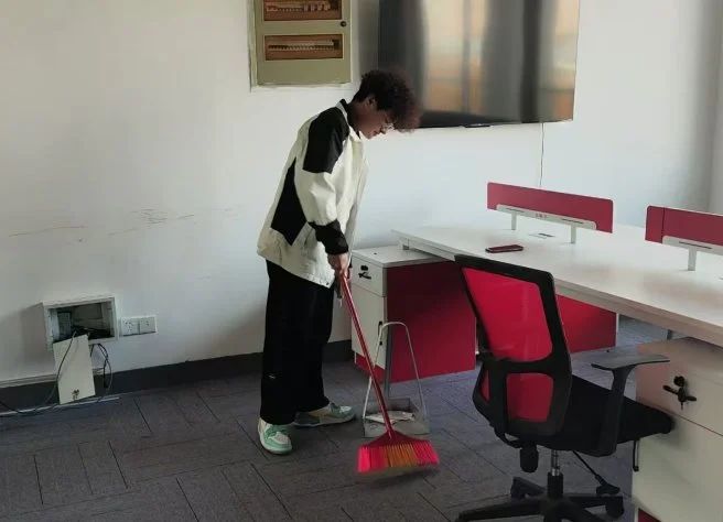 在实训楼的同学们积极参与劳动,纷纷拿起卫生工具开始忙碌起来,他们分工合作、有条不紊的打扫地面、擦拭桌椅等。同学们辛勤劳动的身影成为实训楼中最靓丽的风景线,齐心协力为同学们打造一个干净整洁的实训学习场所。