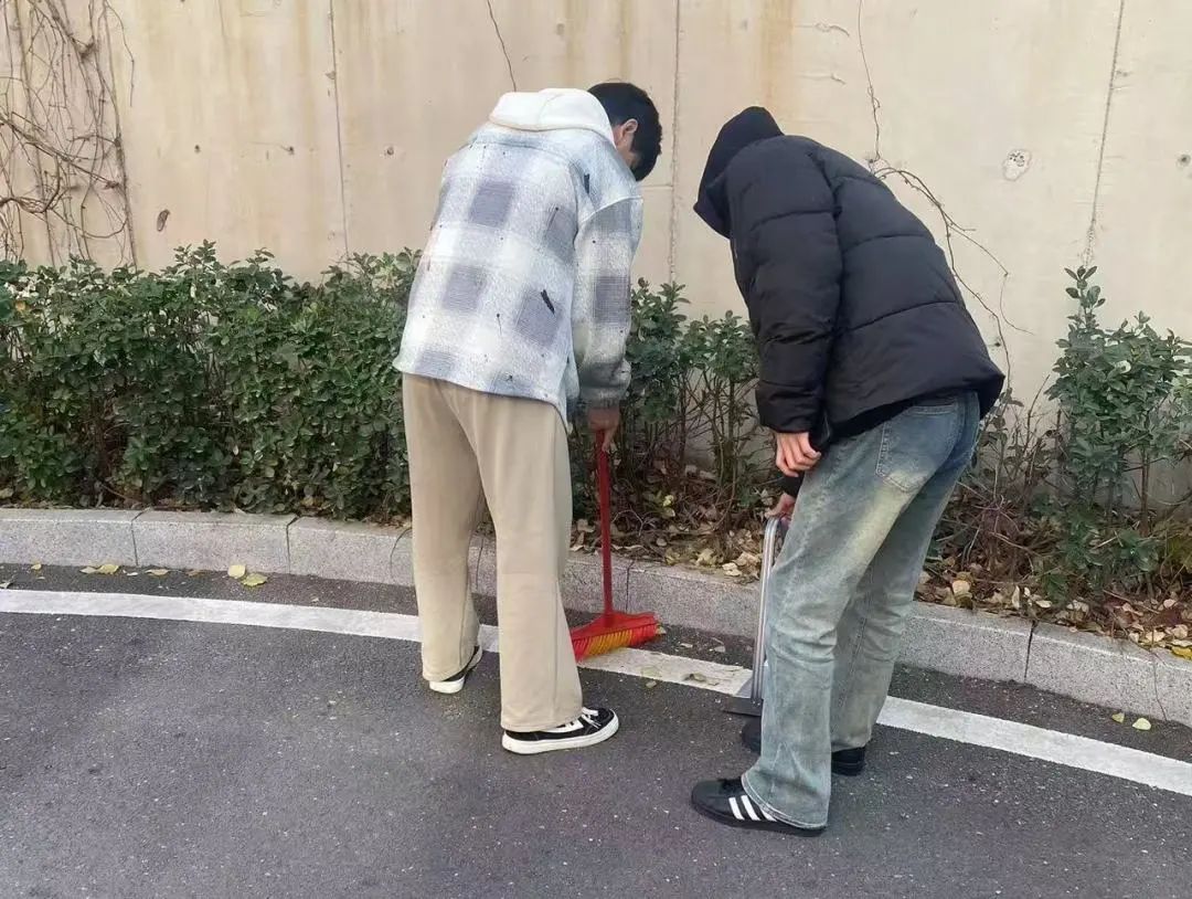 在街道打扫的同学们,热情高涨,充满干劲,他们分工明确、相互配合,拿着卫生工具认真清扫街道上的每一处落叶,不放过任何一个角落。经过同学们的不懈努力,街道变得焕然一新,焕发盎然生机。