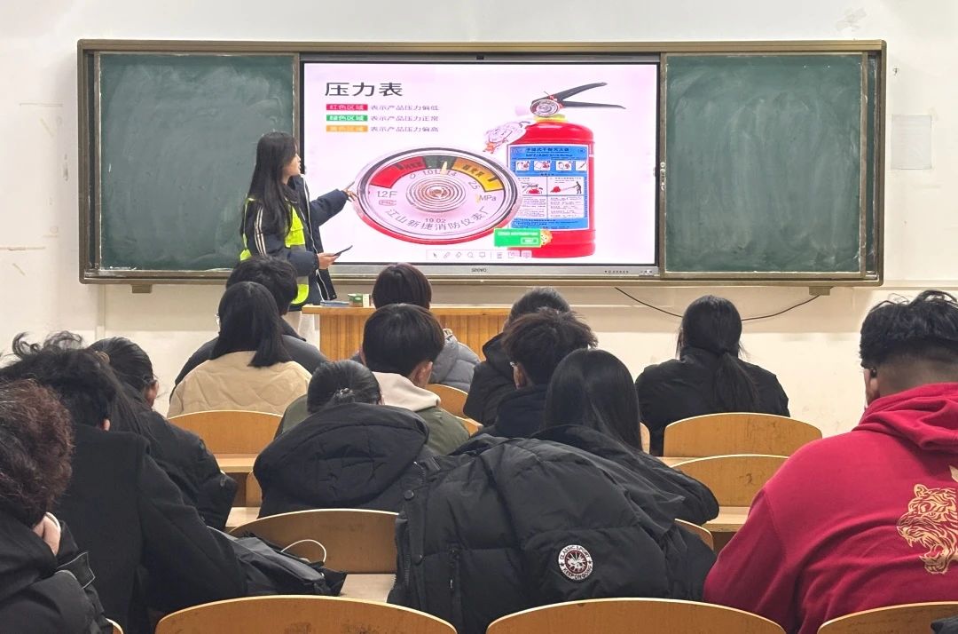 白鹭义警队成员详细讲解灭火器使用方法,向同学们传授了灭火器“一提、二拔、三握、四压”的操作口诀,强调面临火灾时保持冷静的重要性。