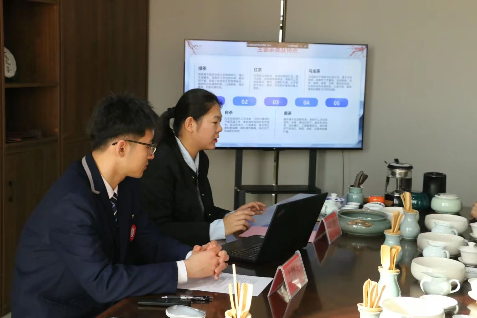 活动在主持人赵煜杰的开场白中拉开帷幕。首先,他向同学们介绍了今天的茶艺师——刘倩老师。掌声过后,大屏幕上开始播放一段精心准备的茶艺文化视频,她将带领学生们穿越时空,领略了从古至今中国茶文化的独特魅力。