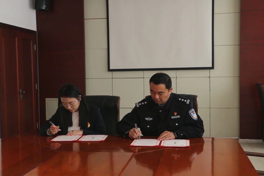 为加强警校合作,为学生提供实践平台,培养具有社会责任感和实践能力的优秀人才,同时推动交通安全宣传与教育工作。山东工程职业技术大学商学院联合济南市公安局交通警察支队章丘区大队于12月6日在章丘区交通警察大队705会议室召开“共建商学院志愿服务基地和劳动教育实践基地”签约仪式。