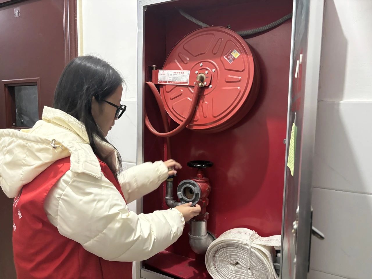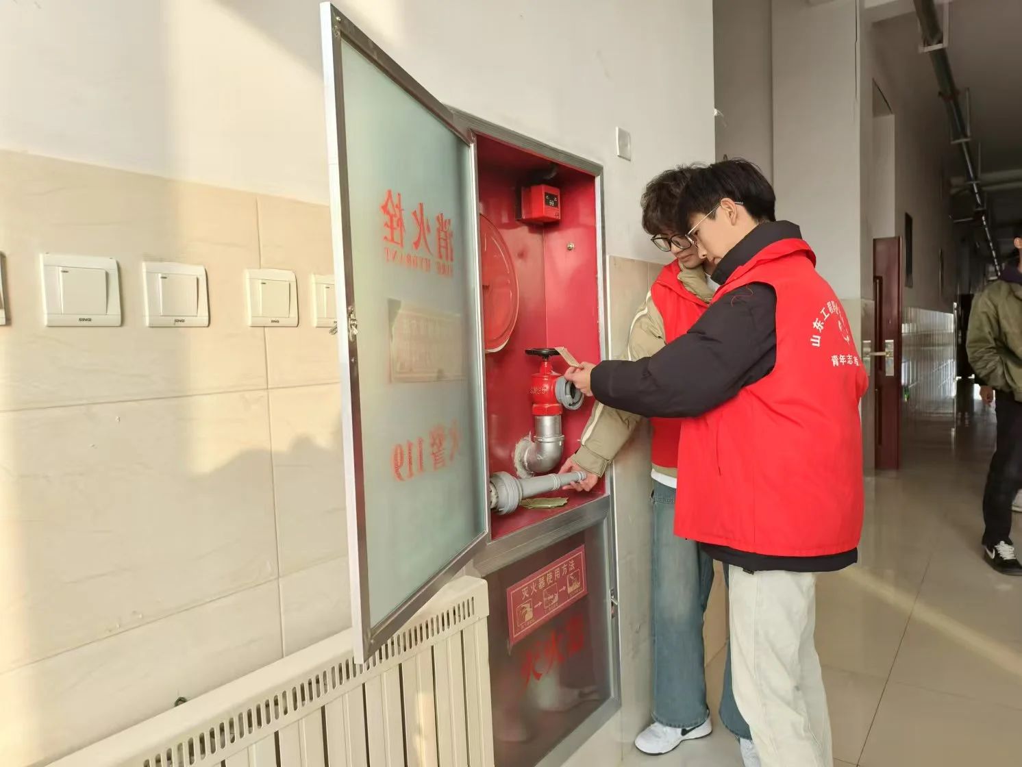 志愿者们深入教学楼和宿舍楼的各个楼层,分别对教学楼和宿舍楼的消防栓、灭火器等设备进行了细致排查。排查过程中,志愿者们还查看了消防设备是否存在过期、损伤等情况,从而确保消防设备能够正常使用。