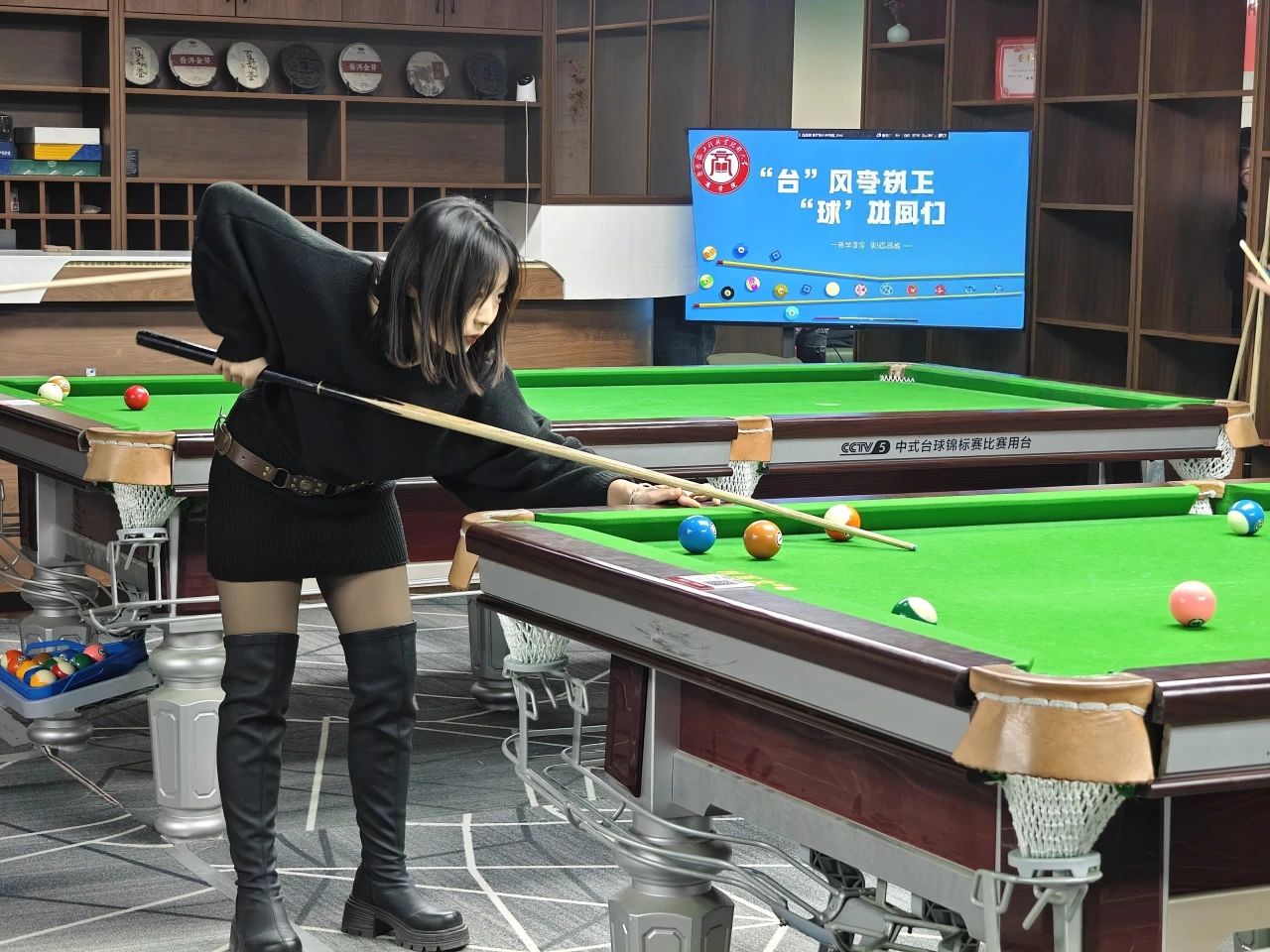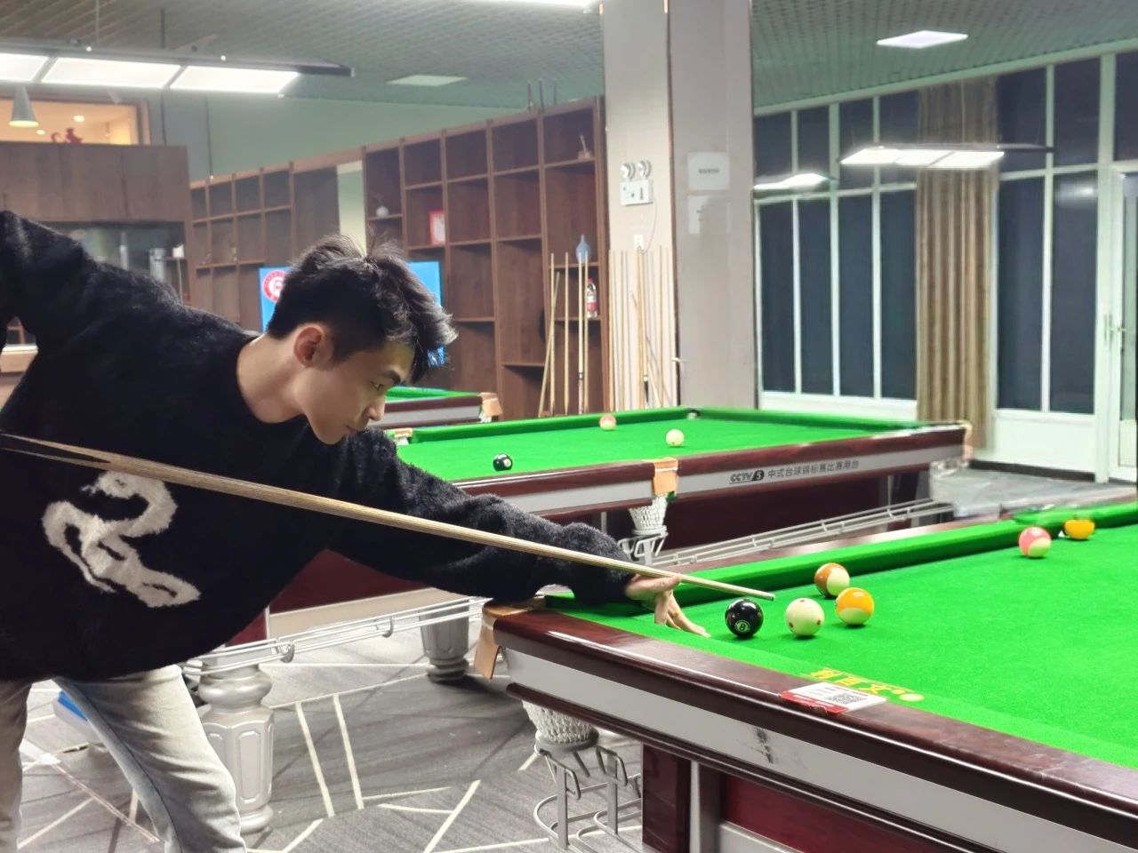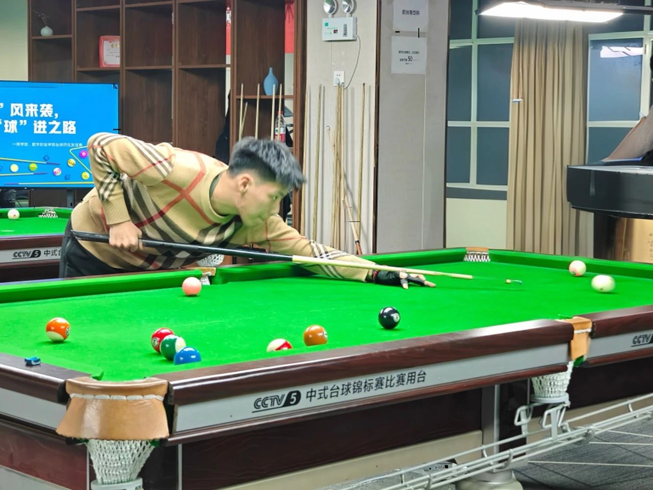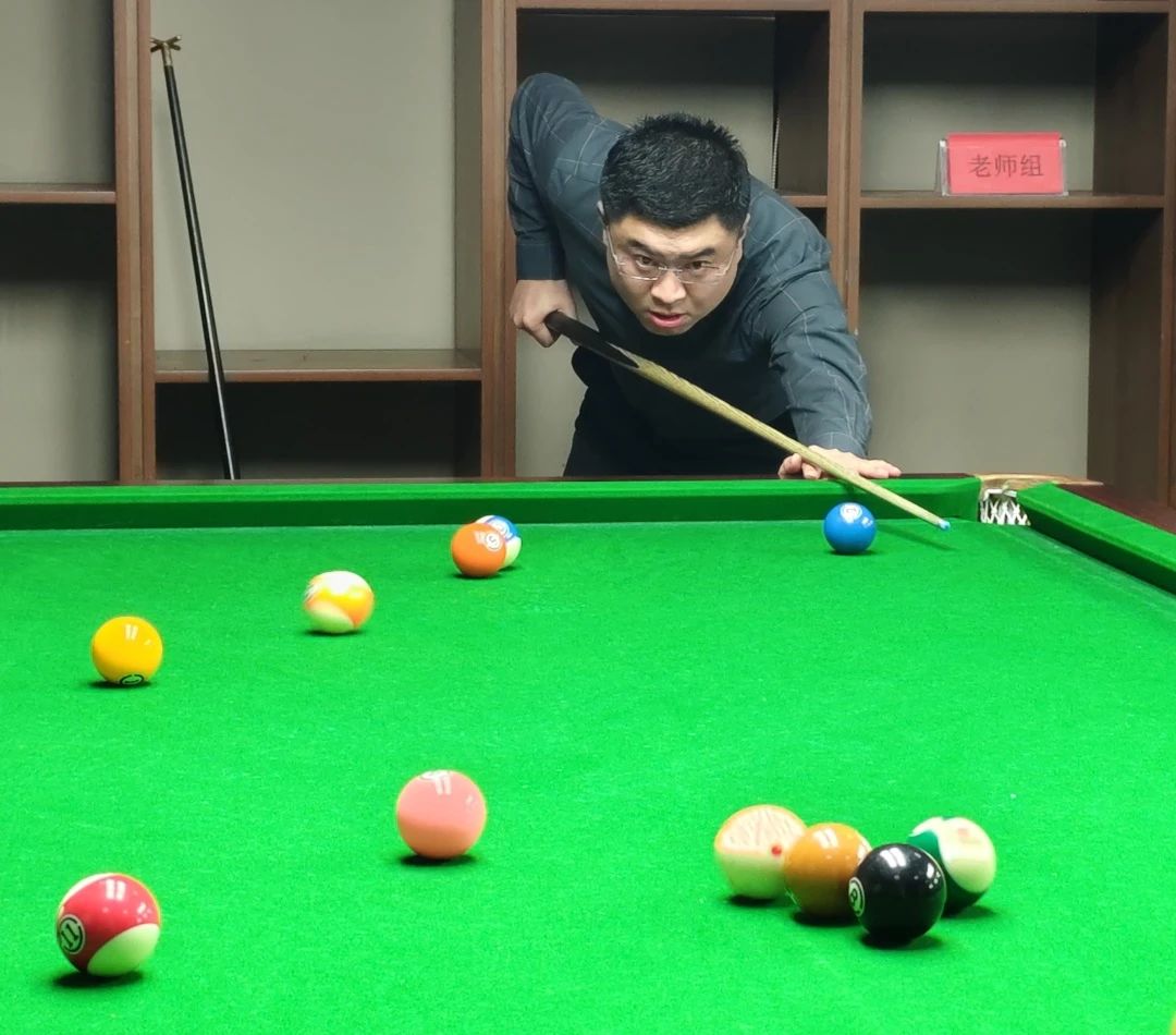 本次比赛设置三局两胜制,采取抽签方式进行分组,遵守传统中式八球规则,共有5组学生和教师分别进行对抗切磋。师生并肩,球杆轻扬,激情与智谋在台球桌上交织;每一次精准的击球,都是经验与青春的和谐共鸣。这不仅是一场台球技艺的较量,更是心灵深处默契与理解的展现,让赛场化为梦想与情谊的绚烂舞台。