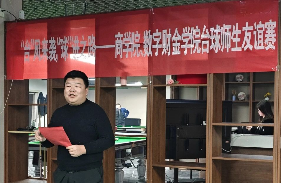 为丰富我校师生课余文化生活,促进师生之间的交流与沟通,倡导健康的生活理念,共同推进阳光体育运动的开展,商学院于12月23日联合数字财金学院在北苑餐厅三楼书香茶社开展了以“‘台’风来袭,球进之路”为主题的台球师生联谊赛。