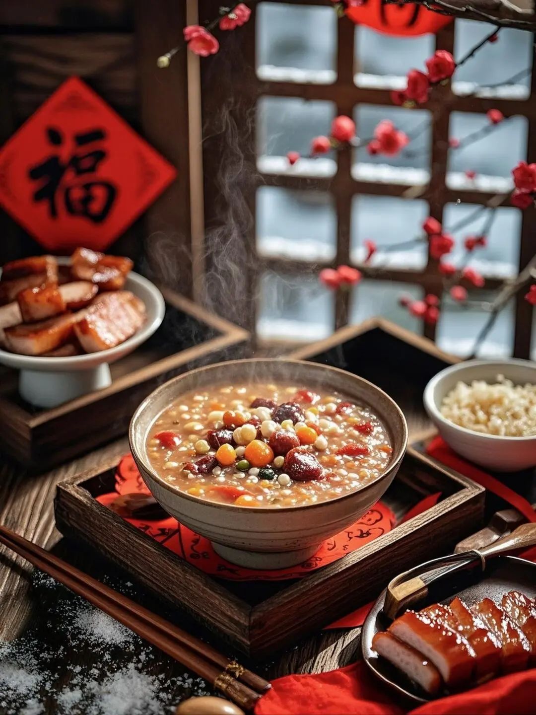 腊八粥,又称“七宝五味粥”“佛粥”“大家饭”等,是一种由多样食材熬制而成的粥。在腊八节这一天,人们会收集各种秋末丰收上来的食物,用大火熬制成一锅“腊八粥”。这种“腊八粥”不仅营养丰富,而且还滋味十足,既能养生暖胃,又能传情暖心。