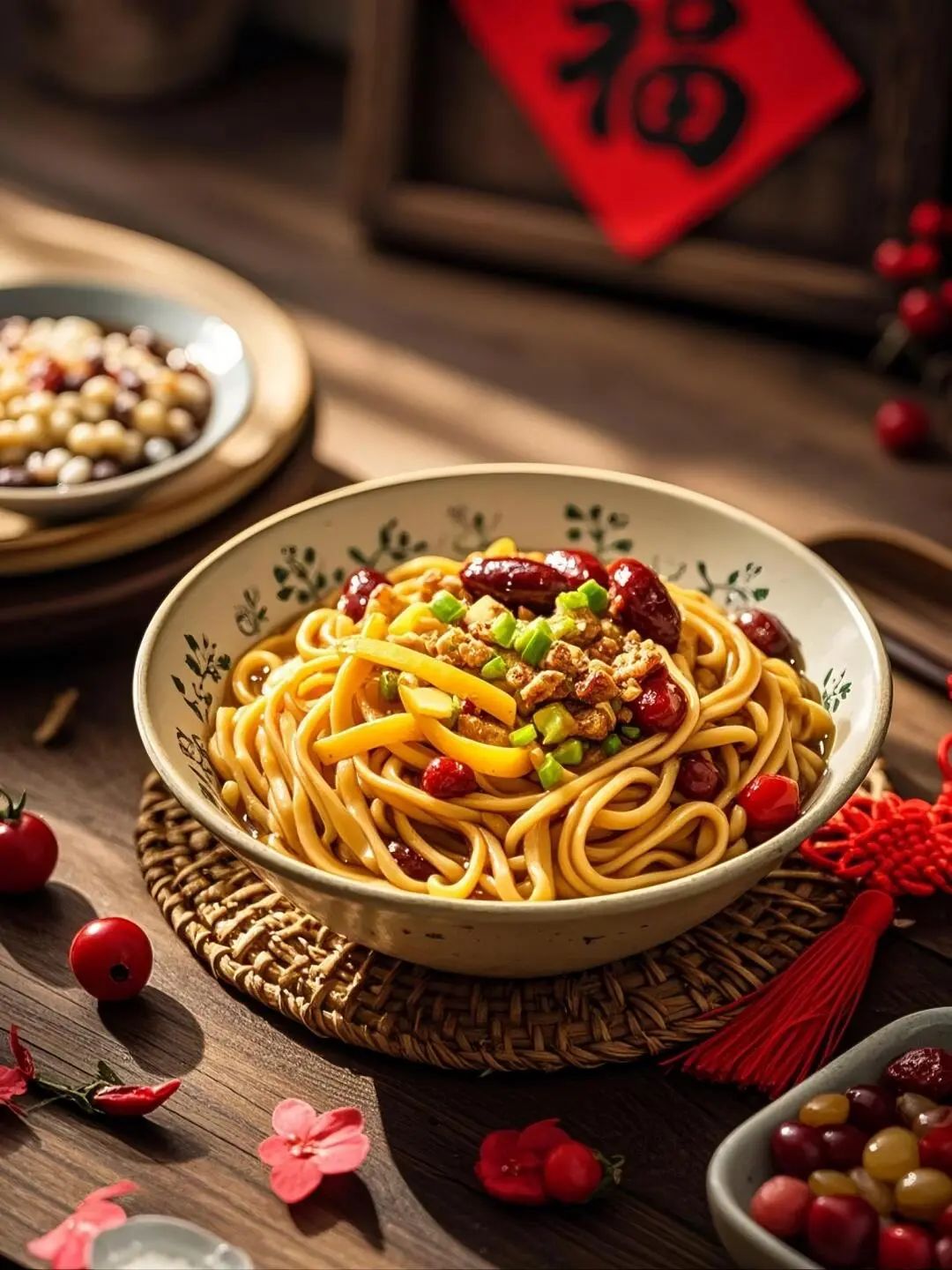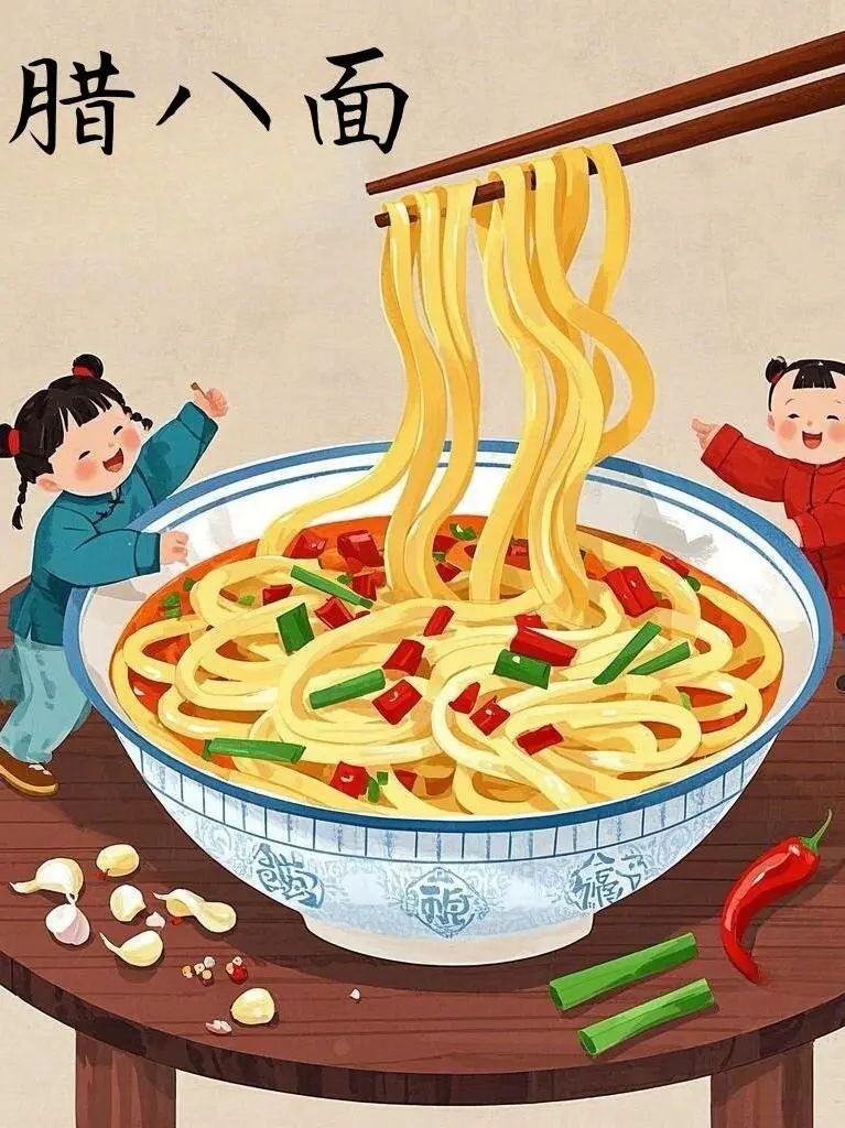 腊八面是陕西地区的传统美食。面条以手工擀制为佳,宽细皆有,劲道十足。其臊子丰富多样,常见的有胡萝卜、豆腐、木耳、黄花菜等切成丁状,与肉臊子一同炒制,加以多种调料,香味浓郁。在腊八节当天,一家人围坐,吃着热气腾腾的腊八面,在寒冷的腊月传递出浓浓的年味儿和家的温暖。