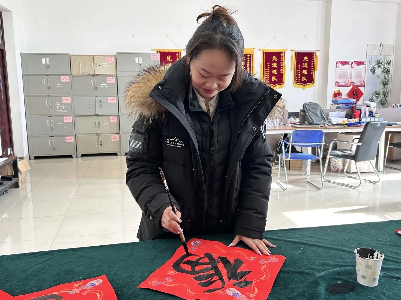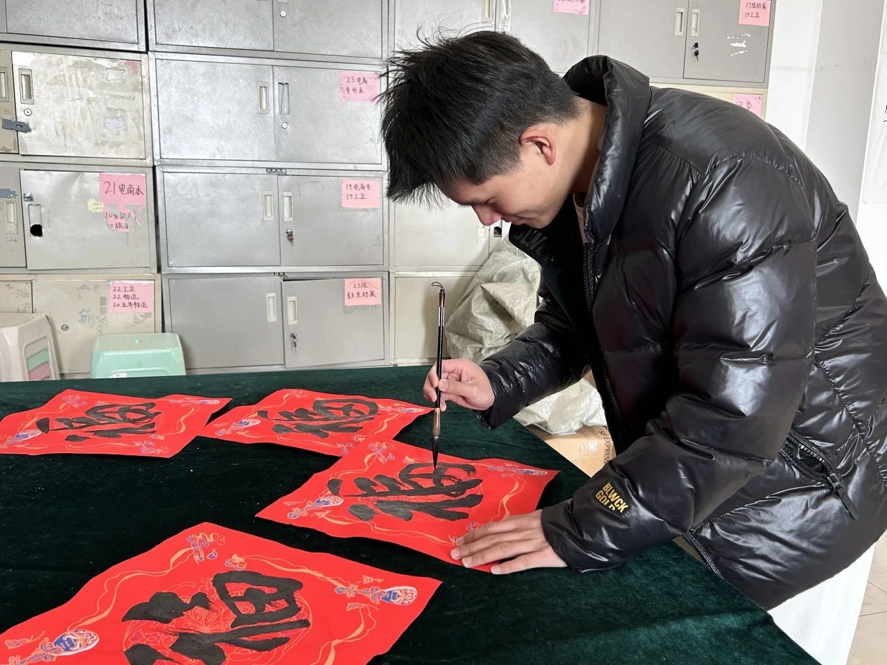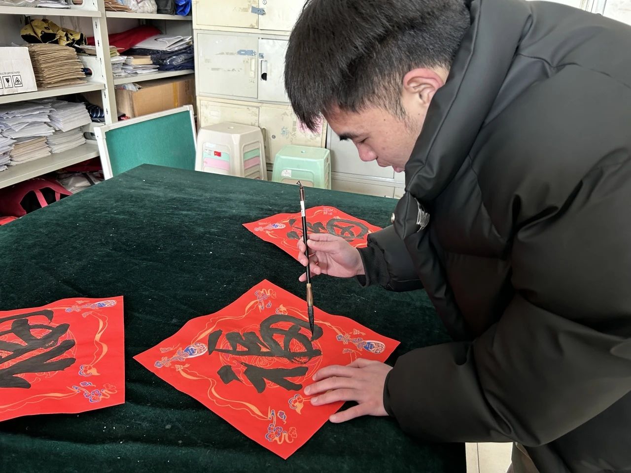 大家纷纷拿起毛笔,认真书写,每一个“福”字都倾注了大家对新年的期盼,现场墨香四溢,欢声笑语不断。