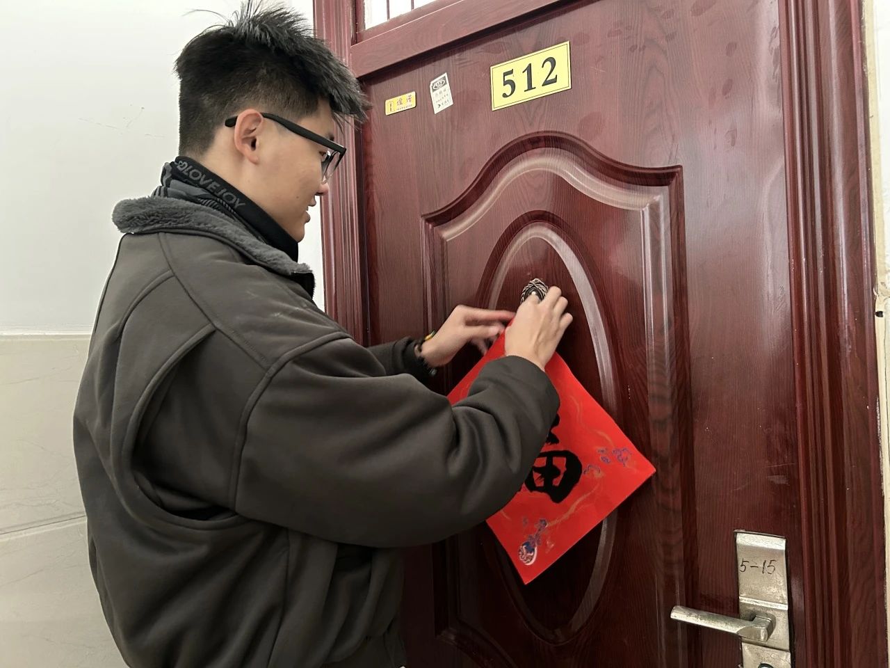 充满祝福的“福”字被张贴在办公室的门上,整个教学楼都沉浸在浓浓的年味之中。这不仅是一张简单的“福”字,更是商院师生之间深厚情谊的体现,为即将到来的新年增添了一份别样的温暖。