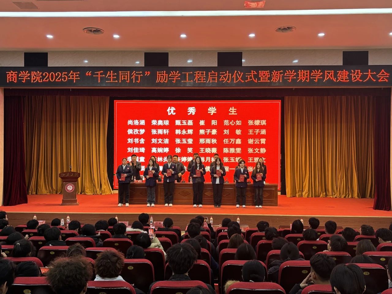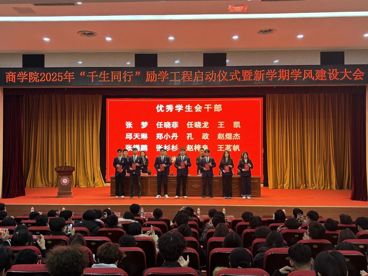 大会在合影留念中圆满落幕。此次大会不仅是一次表彰先进的盛会,更是一次凝聚人心、共筑未来的启航仪式。商学院全体师生将以“千生同行”励学工程为契机,携手并进、共同努力,秉持勤奋、严谨、求实、创新的学风精神,扎实推进学风建设工作,为培养更多具备高素质和技能的人才贡献智慧和力量。