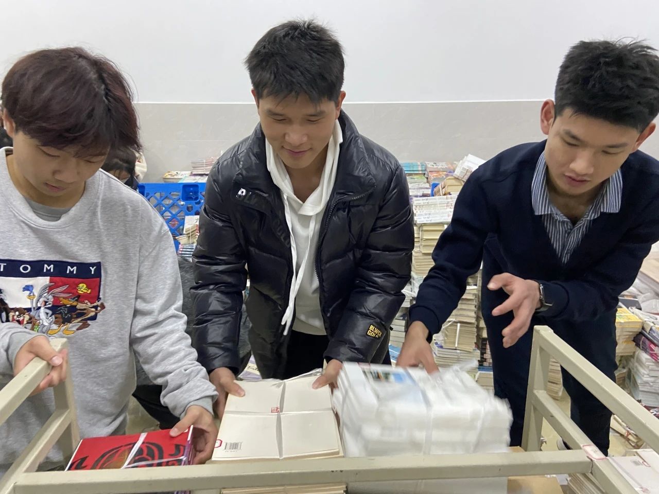志愿者们将载满书籍的小推车运至仓库,随即展开了书籍入库工作。他们严格依照书籍的编号顺序,逐一将书籍从小推车上搬下,确保每本书籍都能完好无损地进入仓库。在搬运过程中,志愿者们充分考虑到仓库的区域划分,将教材、教辅资料、课外读物等不同类型的书本进行分类摆放,确保每一个区域的书籍都摆放得井然有序,不仅便于后续的管理与查找,也彰显了志愿者们严谨的工作态度和高效的工作能力。