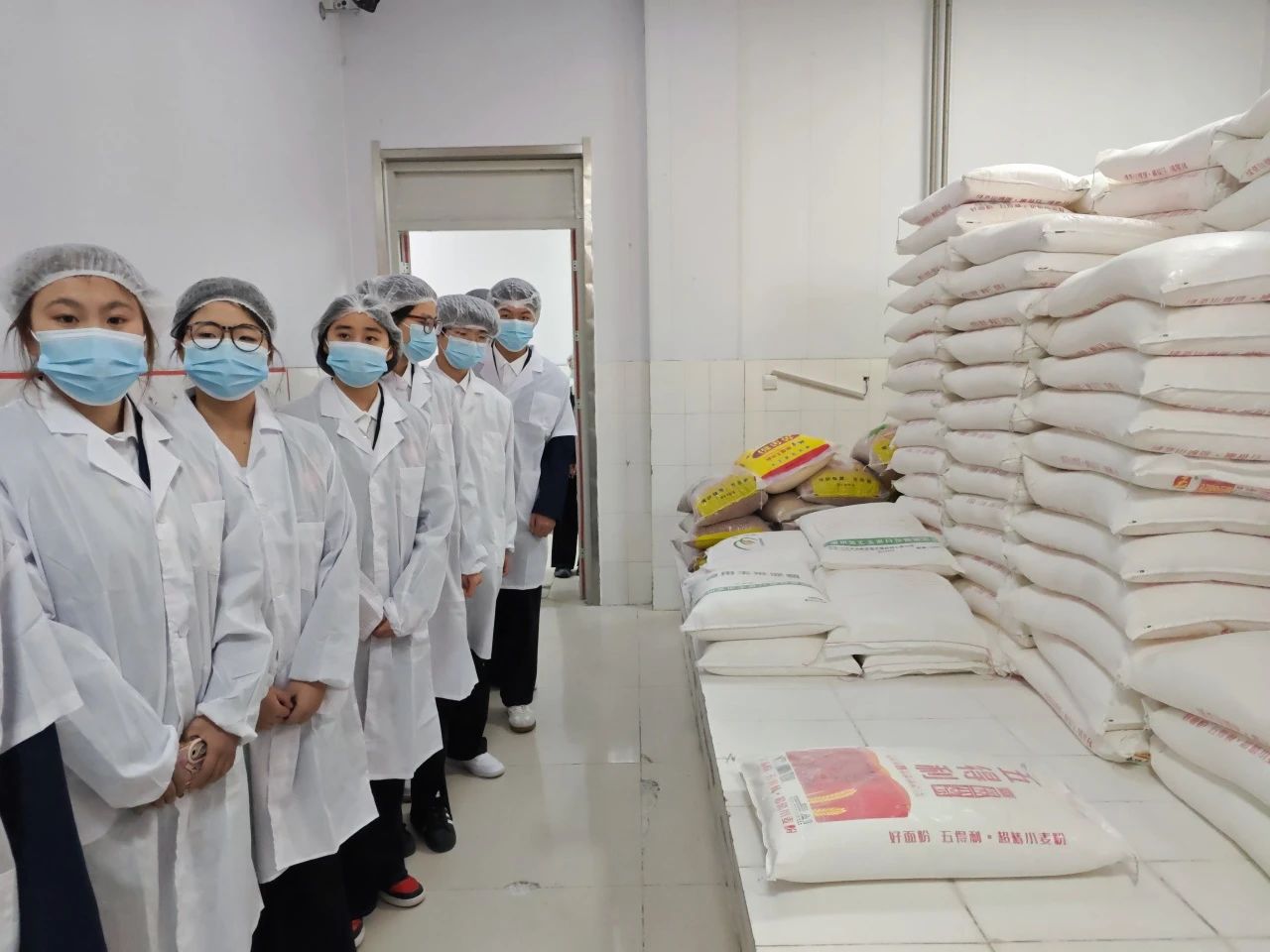 随后,冯经理带领同学们参观了食品留样间、面点制作间、蔬菜粗加工间、烹饪间等区域,并详细讲解了餐具清洁消毒流程。同学们亲眼目睹了后厨干净整洁的环境,规范的操作流程,对餐厅的卫生管理有了更直观的认识。