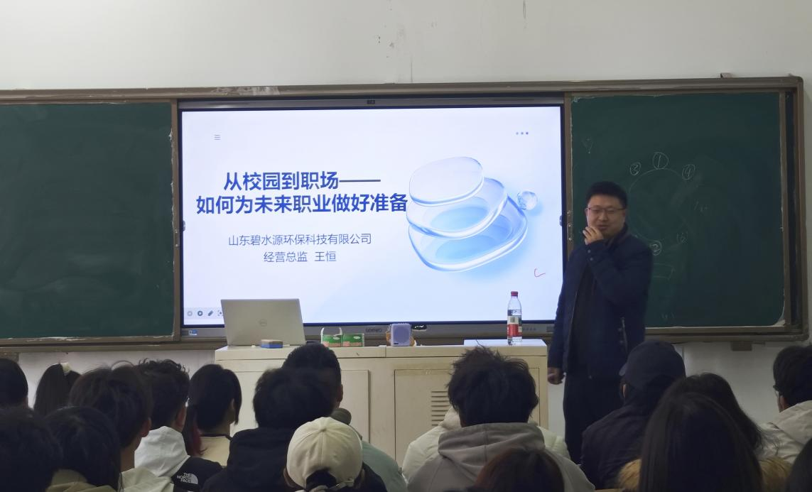 商学院院长刘杰指出,职业教育的生命力在于“产”与“教”的同频共振。我们的企业数字化管理实训基地已形成“产业学院—技术研发—成果转化”的闭环,此次邀请山东碧水源高管来校授课,正是将这种模式向环保领域延伸的探索。