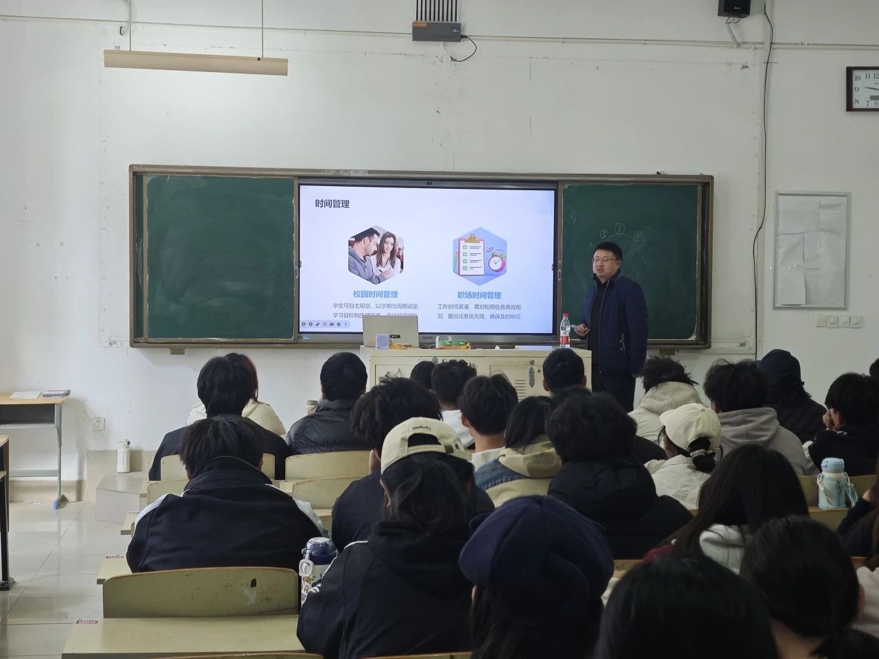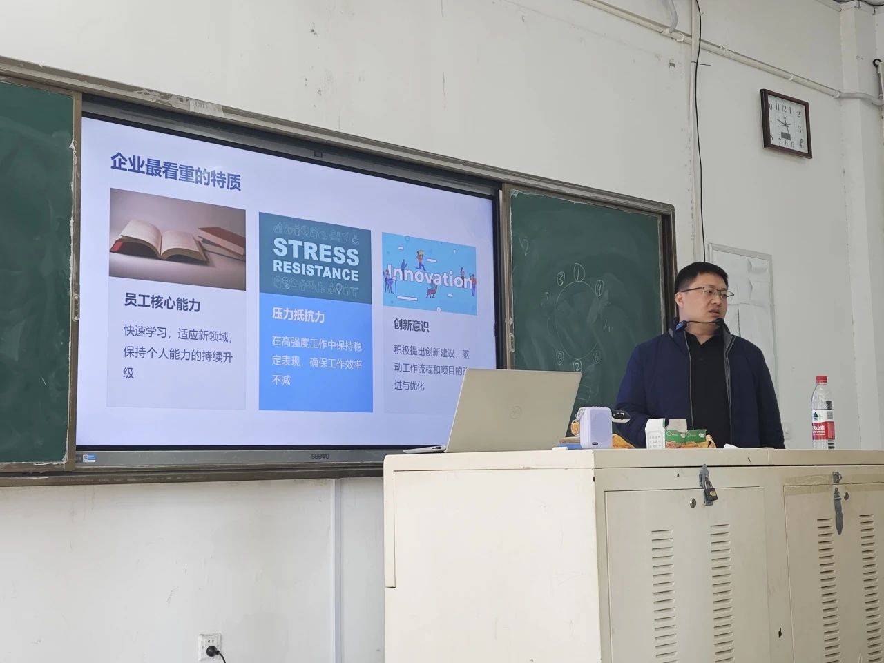 在数字化转型浪潮席卷全球、职业教育改革深入推进的背景下,山东工程职业技术大学商学院以“金课建设”为突破口,重构企业数字化管理本科人才培养路径。2025年3月21日上午,山东碧水源环保科技有限公司经营总监王恒作为“企业导师”应邀走进校园,为2024级企业数字化管理专业本科生带来《从校园到职场——数字化时代的职业素养重构》主题实训课。作为国家级高新技术企业,山东碧水源此次参与我院校企联动不仅是一次职业认知启蒙,更是职业教育对接国家“双碳”战略、服务绿色经济发展的生动实践。这标志着商学院在深化产教融合、打造高阶性课程体系上迈出关键一步。