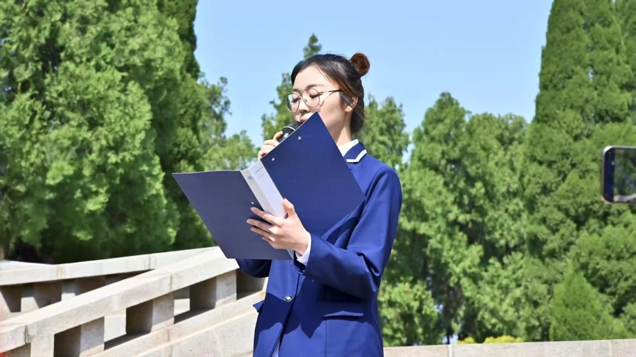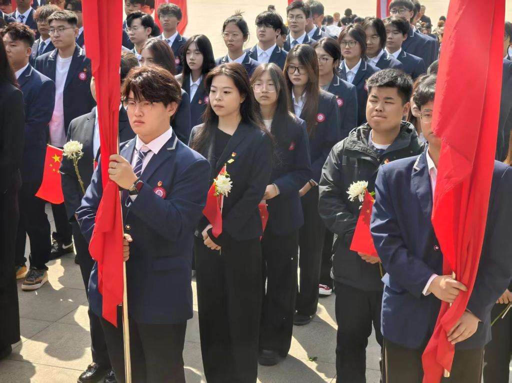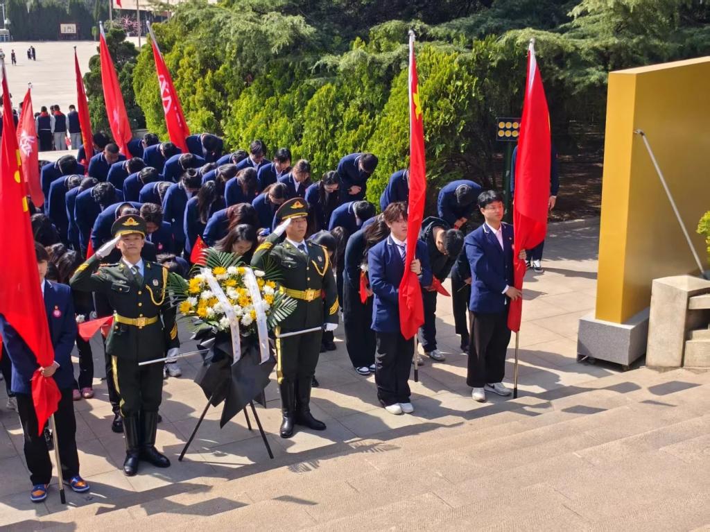随后,在满佳琪同学的领誓下,全体共青团员面向纪念碑,重温入团誓词仪式。青年学子高举右拳,字字铿锵:“我志愿加入中国共产主义青年团,坚决拥护中国共产党的领导……为共产主义事业而奋斗!”誓言如雷,激荡在纪念馆上空,这不仅是对入团初心的坚守,更是对未来的承诺。