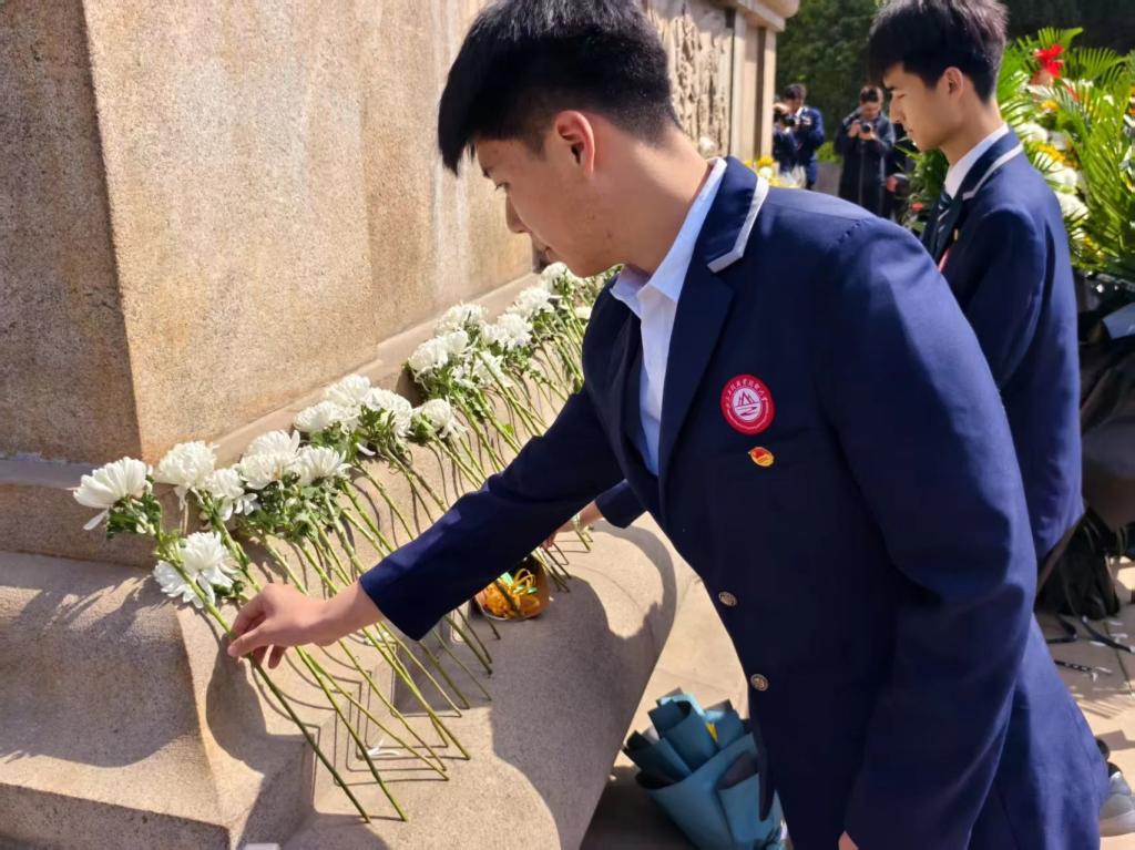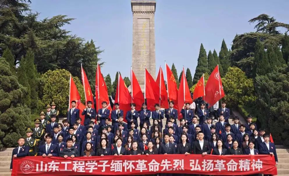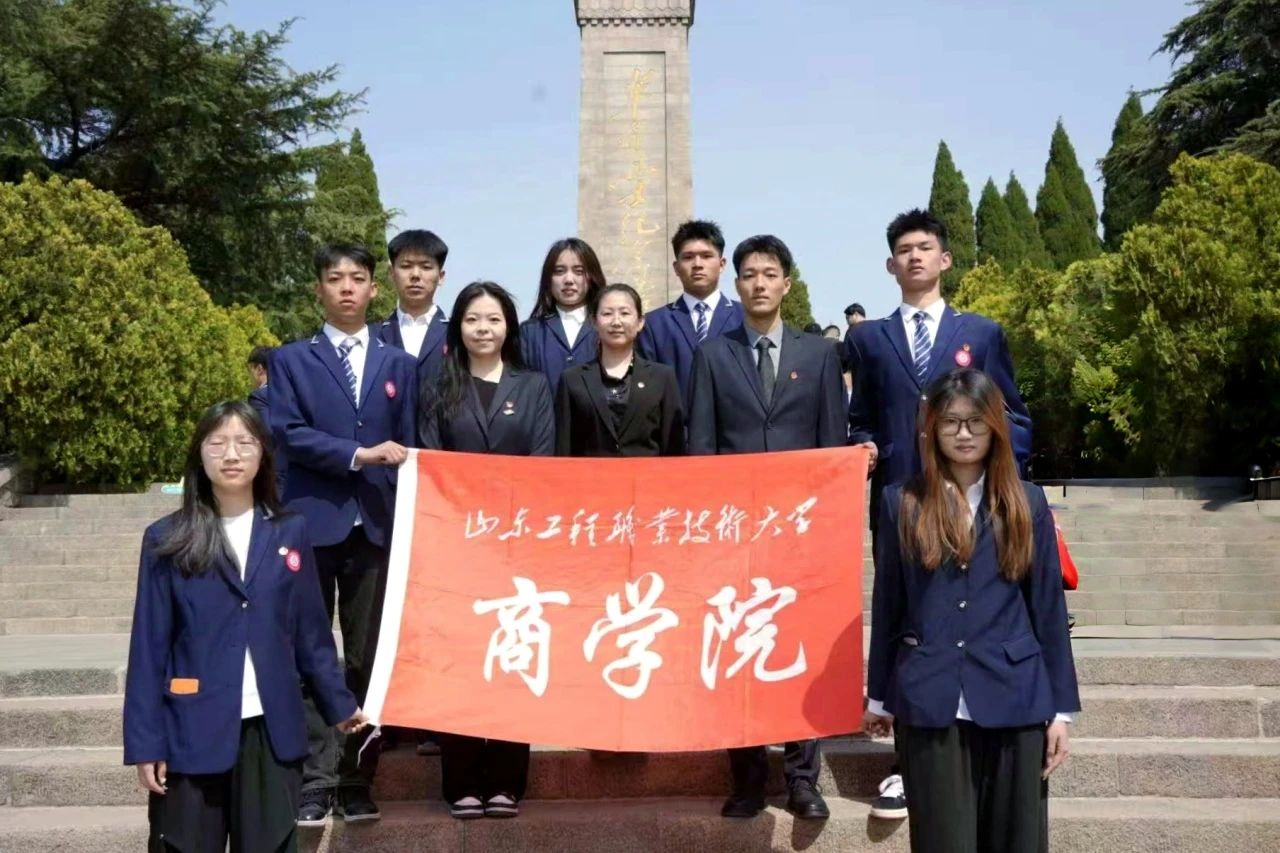 活动结束后,师生绕行瞻仰纪念碑,凝视碑文上镌刻的英雄事迹。商学院师生代表与团委书记王玉珠、团委办公室主任蔡雷停在纪念碑台阶前合影,镜头定格下新时代青年传承红色基因的坚定目光。