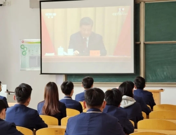 5月10日上午,庆祝中国共产主义青年团成立100周年大会在北京人民大会堂隆重举行。中共中央总书记、国家主席、中央军委主席习近平出席大会并发表重要讲话。为使广大同学厚植爱党、爱国、爱社会主义的情感,争做有理想、有本领、有担当的时代青年,建筑工程学院组织学生代表在诚基楼307教室观看建团一百年直播,同学们戴口罩间隔就坐。