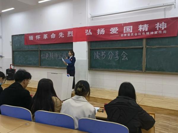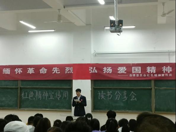 读书时,我们可能很重视感应的价值,可能会尽量把自己的想法隐藏起来;但是,我们自己也明白,我们不可能对书里的一切都完全抱着同感,不可能把自己完全掩埋起来。为让大家进一步交流书籍体会及感悟,12月11日下午五点半,我校自律委员会在信息工程学院107阶梯教室举行“红色精神宣传周——读书分享会”活动。