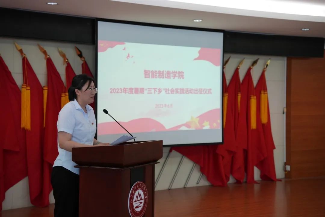 为深入学习贯彻习近平新时代中国特色社会主义思想和党的二十大精神,贯彻落实习近平总书记关于青年工作的重要思想,学习习近平总书记重要讲话精神,引导和帮助学生上好理论与实践相结合的“思政课堂”,让广大青年在社会实践中“受教育、长才干、做贡献”,坚定不移的听党话、跟党走。7月3日下午,召开了智能制造学院2023年度暑期“三下乡”社会实践出征议式。